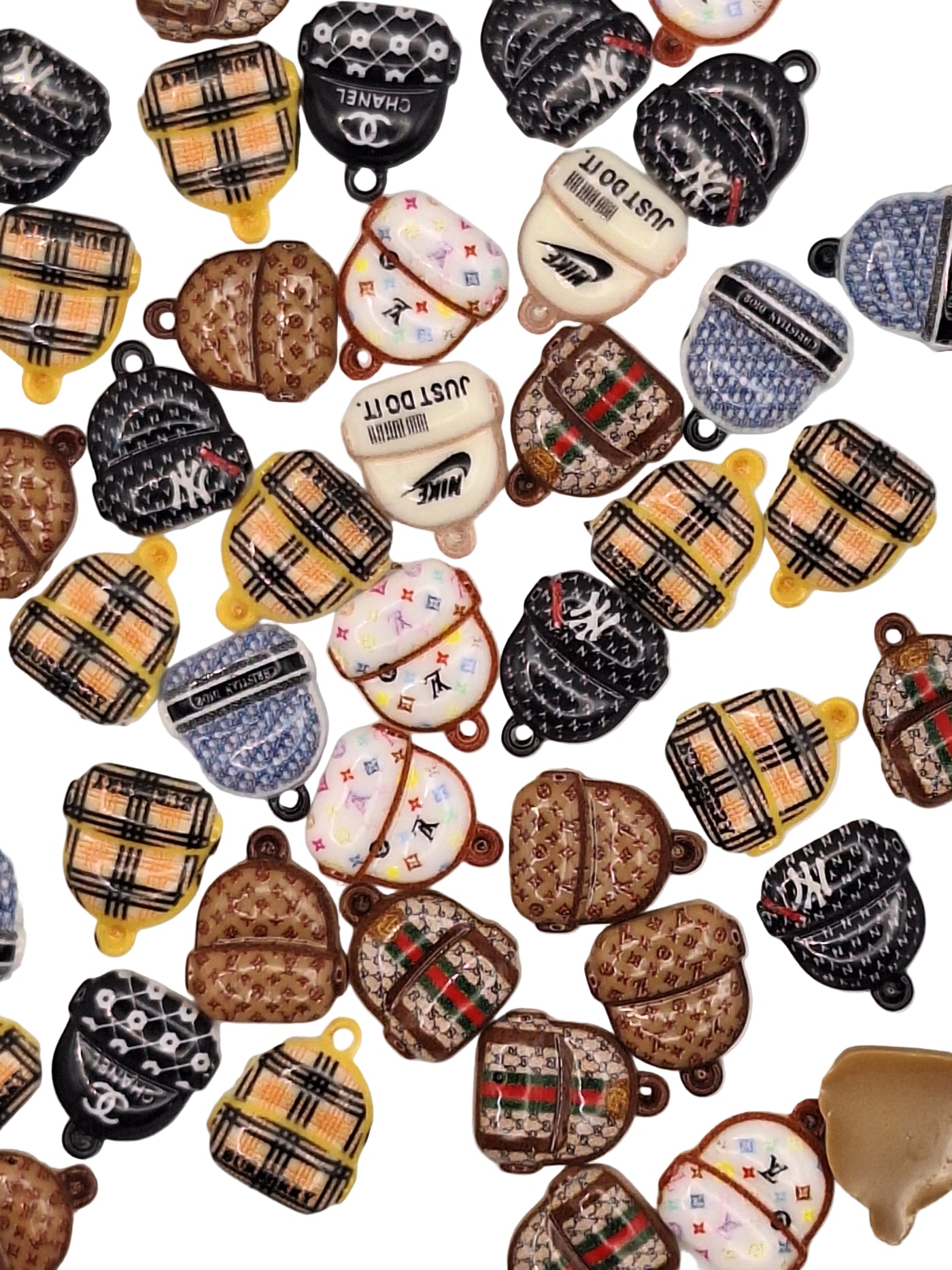 Backpack Nail Charms are precision-crafted metal embellishments designed for nail art professionals and enthusiasts. Each charm measures 12mm x 10mm, offering the ideal proportion for accent placement on natural or artificial nails. This 50 pieces assortment delivers multiple pieces per set, allowing for creative layering and mixed designs. The durable construction withstands application and wear, making these charms a reliable choice for salon-quality manicures. Perfect for custom nail designs, special occasions, or retail nail technician inventory.